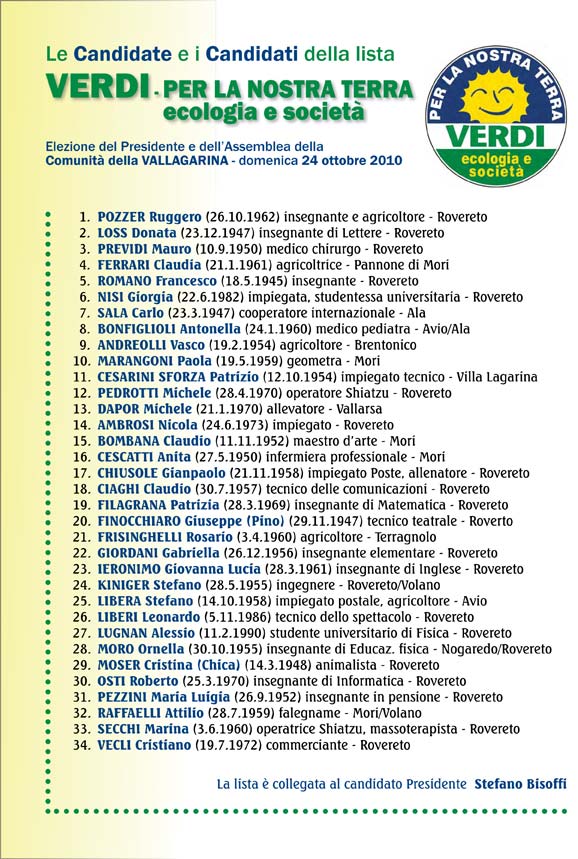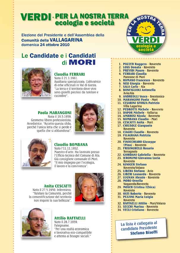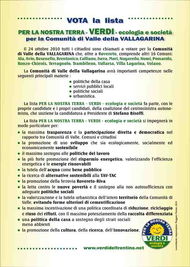 elezioni comunità di valle della Vallagarina - domenica 24 ottobre 2010