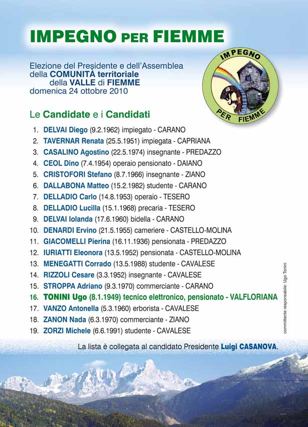 16. TONINI UGO (8.1.1949) tecnico elettronico, pensionato - VALFLORIANA