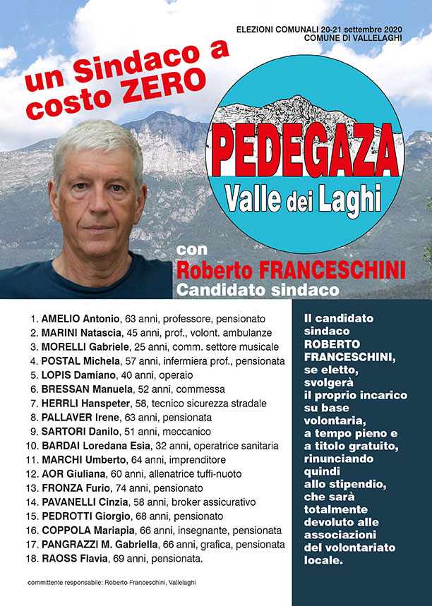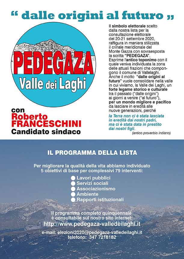 «A noi “Lista Pedegaza-Valle dei Laghi” l'impegno A sostenere