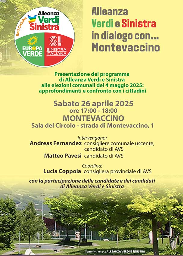 Sabato 26 dalle 17 alle 18 – INCONTRO con i cittadini di Montevaccino - Sala del Circolo.