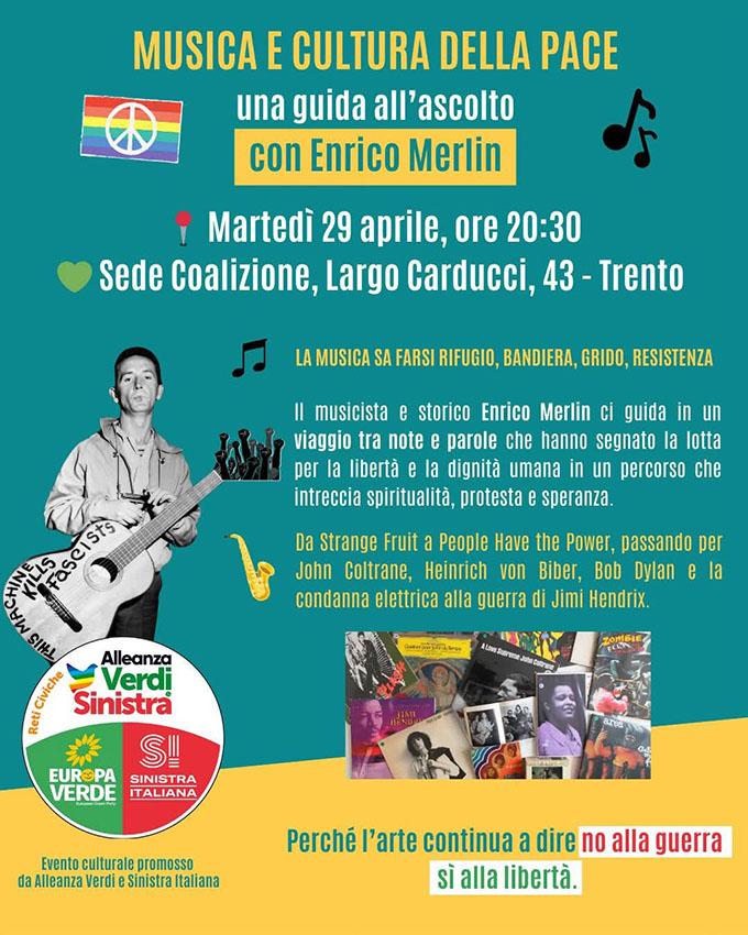 Martedì 29 aprile alle 20.30 - MUSICA E CULTURA DELLA PACE – Sede della coalizione - largo Carducci, 43.