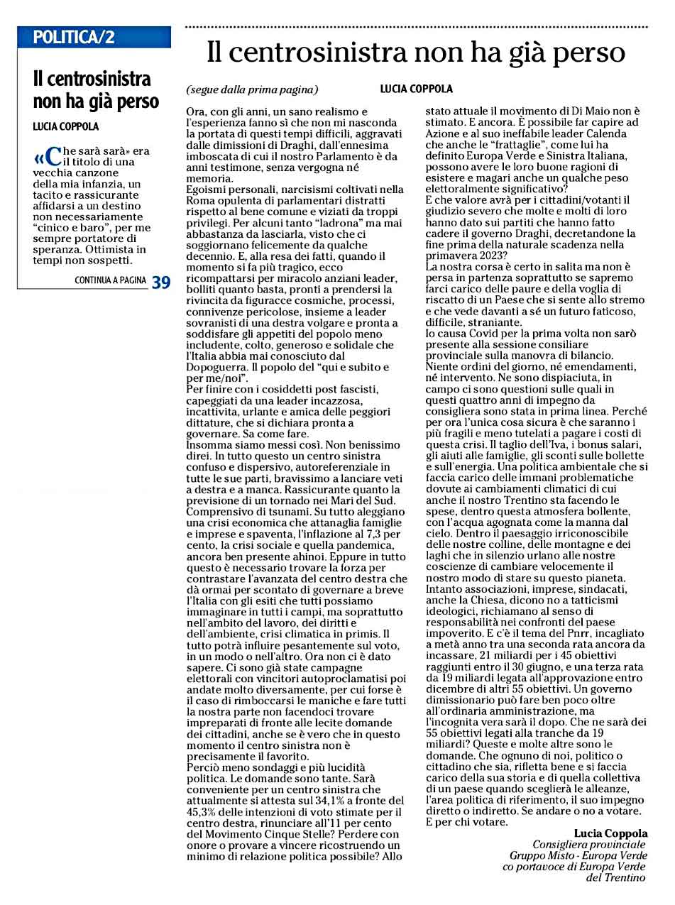 da l’Adige di giovedì 8 settembre 2022 leggi tutto