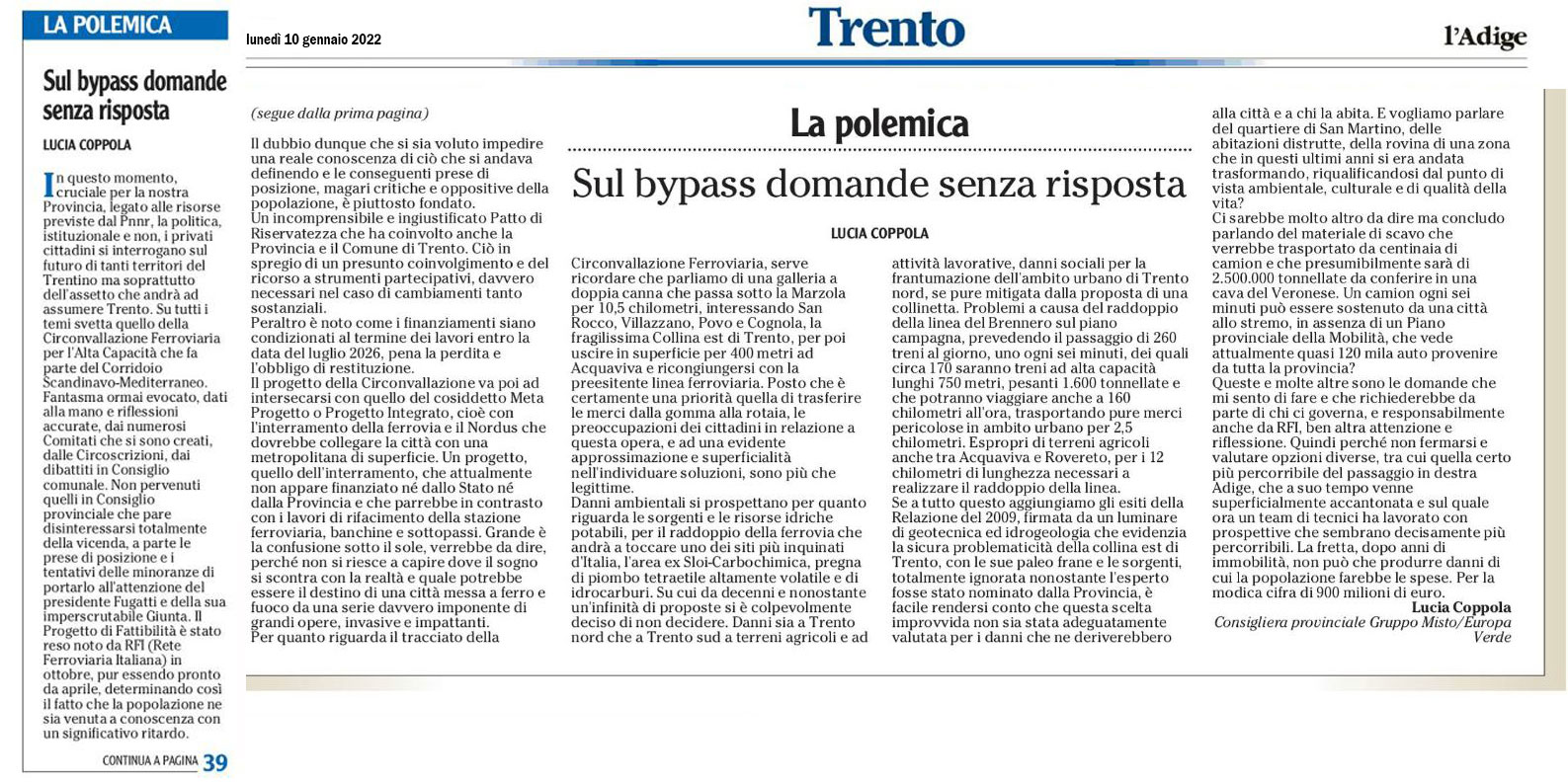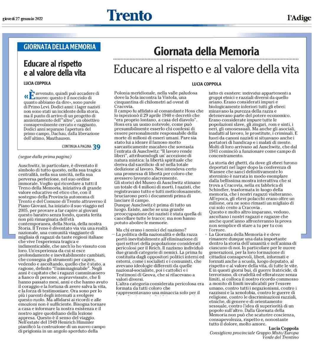 da l'Adige di venerdì 12 febbraio 2021 leggi tutto in PDF