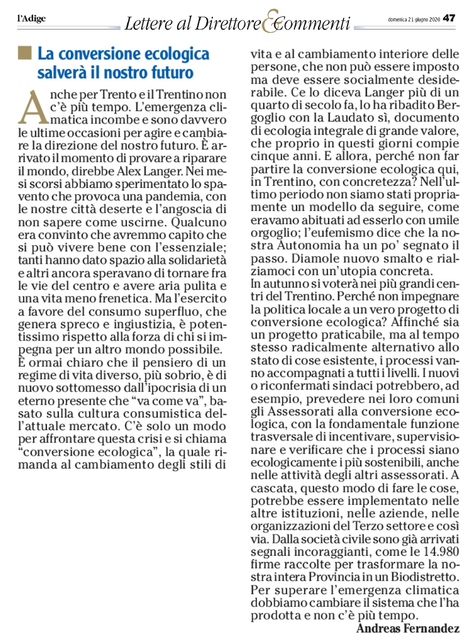 da l’Adige di venerdì 16 ottobre 2020
