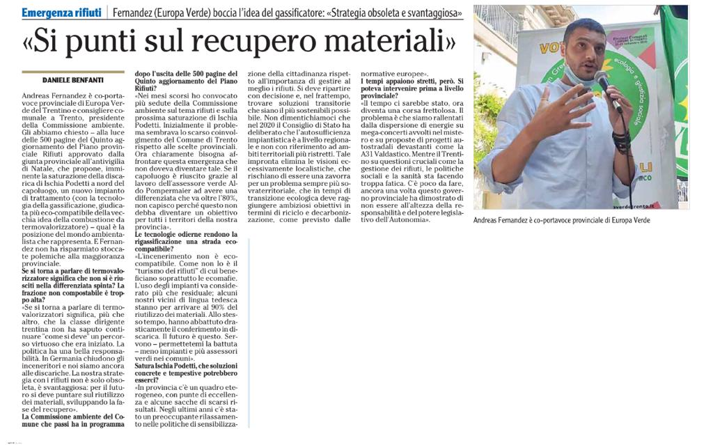 Fernandez (Europa Verde) boccia l'idea del gassificatore: